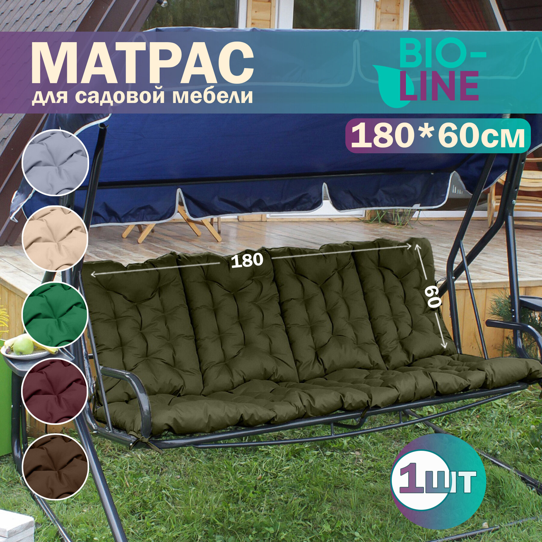 Отзывы на Матрас для садовых качелей Bio-Line, матрас для шезлонга, на кушетку, 60х180 см,влагостойкий, на завязках,влагостойкий олива