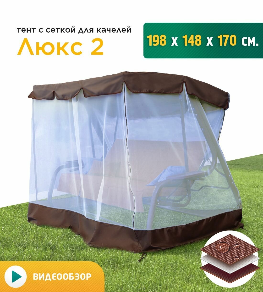 Тент с сеткой для качелей Люкс 2 (198х148х170 см) коричневый информация: