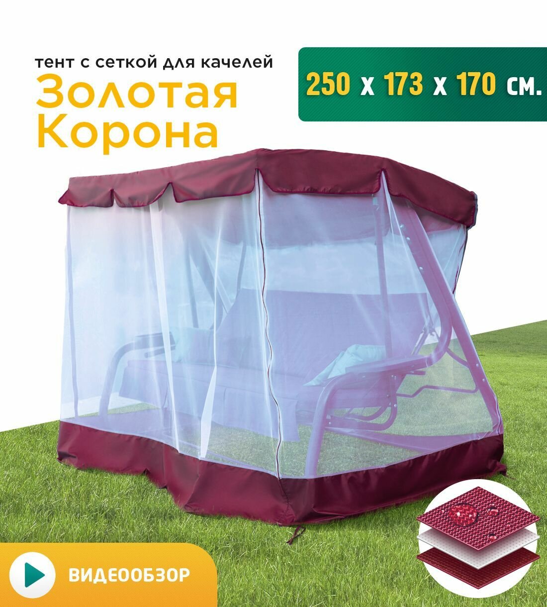 Тент с сеткой для качелей Золотая корона (250х173х170 см) бордовый информация: