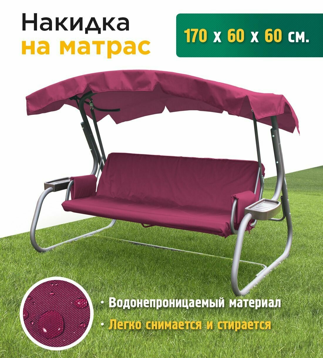 Отзывы на Накидка водонепроницаемая на матрас для качелей (170х60х60 см) бордовый