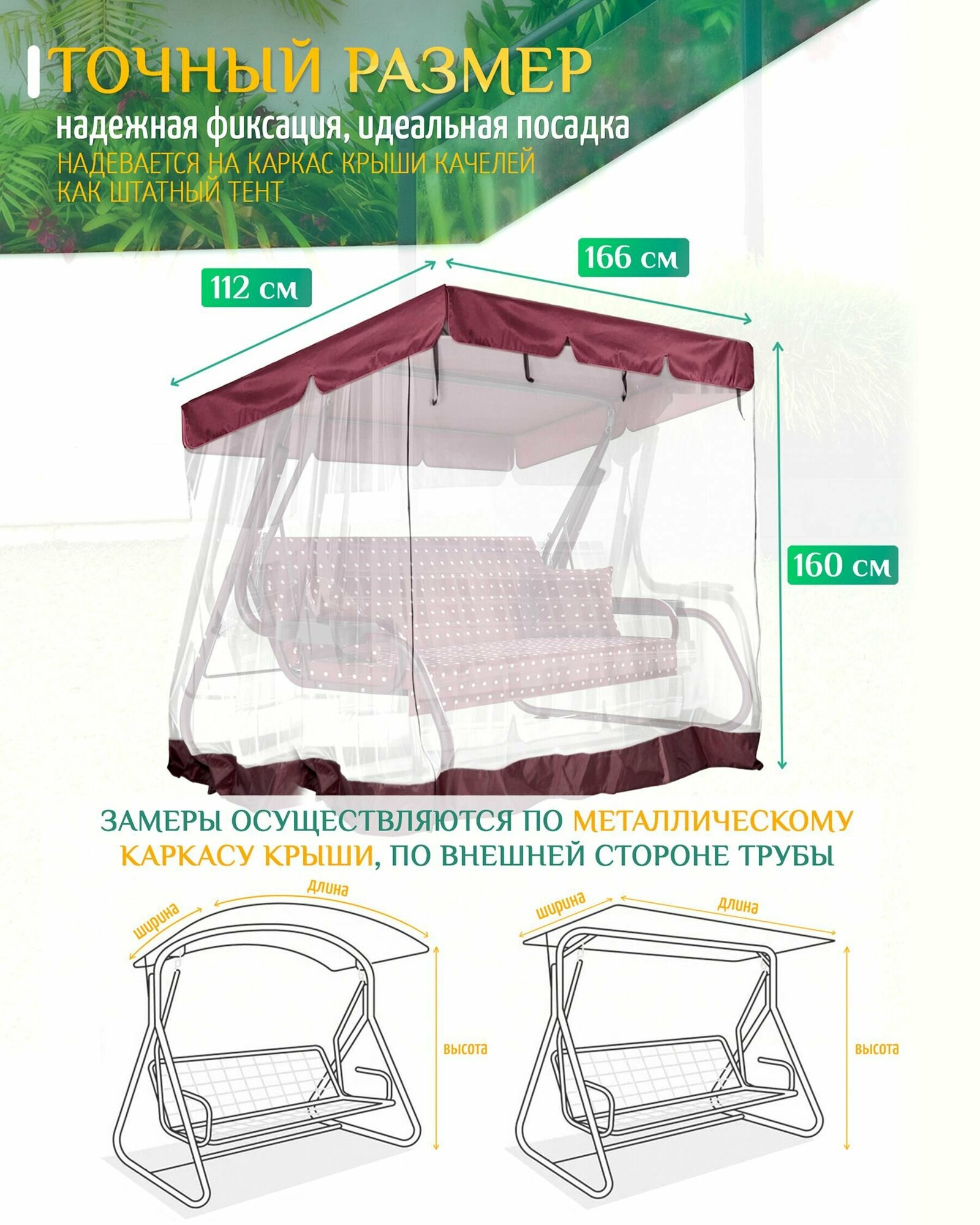 Тент с москитной сеткой для качелей (166х112х160 см) бордовый информация: