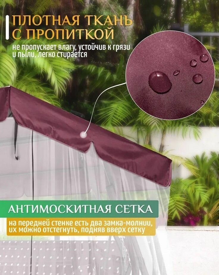 | Дополнительная информация | Тент с москитной сеткой для садовых качелей из уплотненной ткани Оксфорд 240D и прочной сеткой |