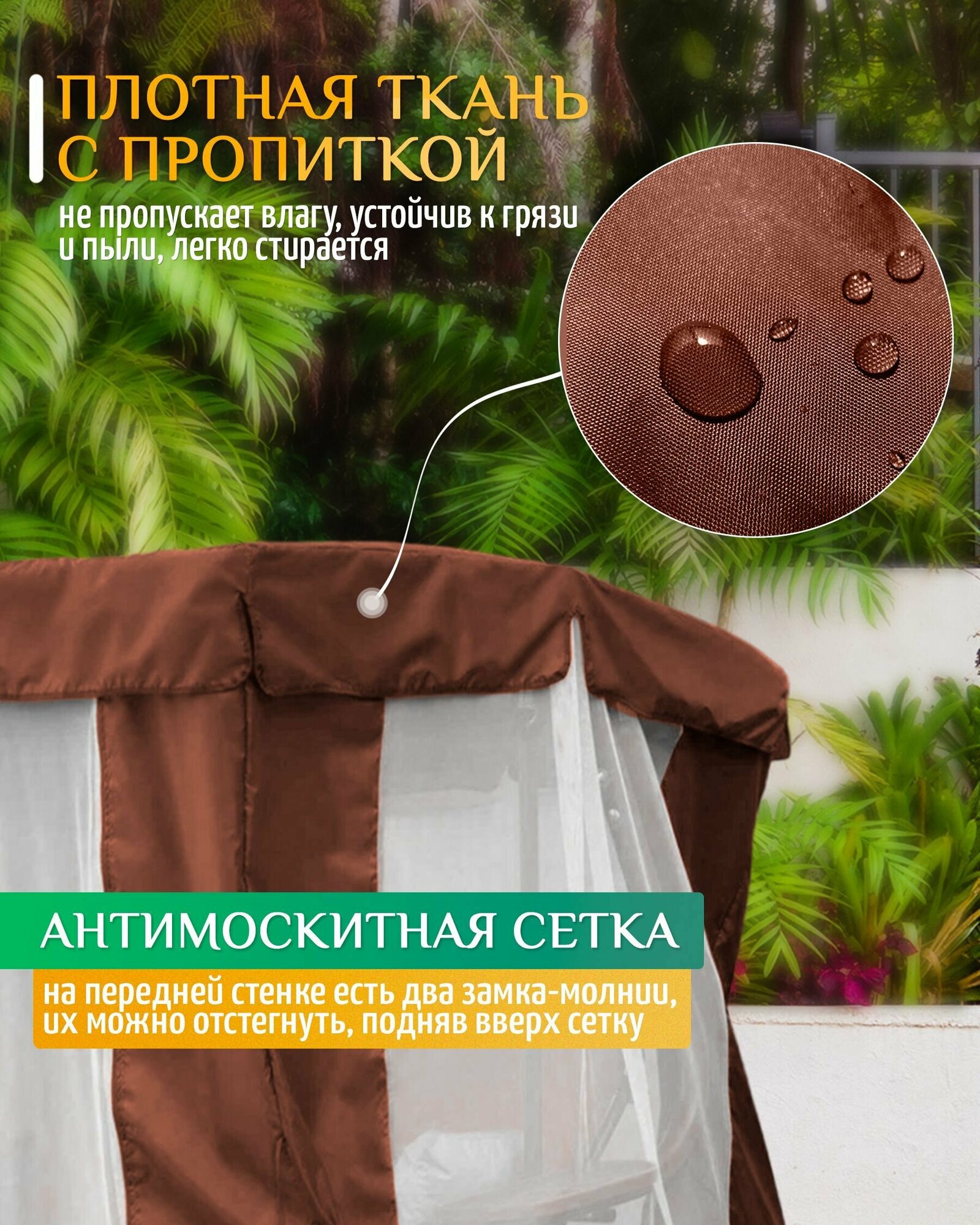 | Дополнительная информация | Тент - шатер с москитной сеткой для садовых качелей из уплотненной ткани Оксфорд 240D и прочной сеткой |