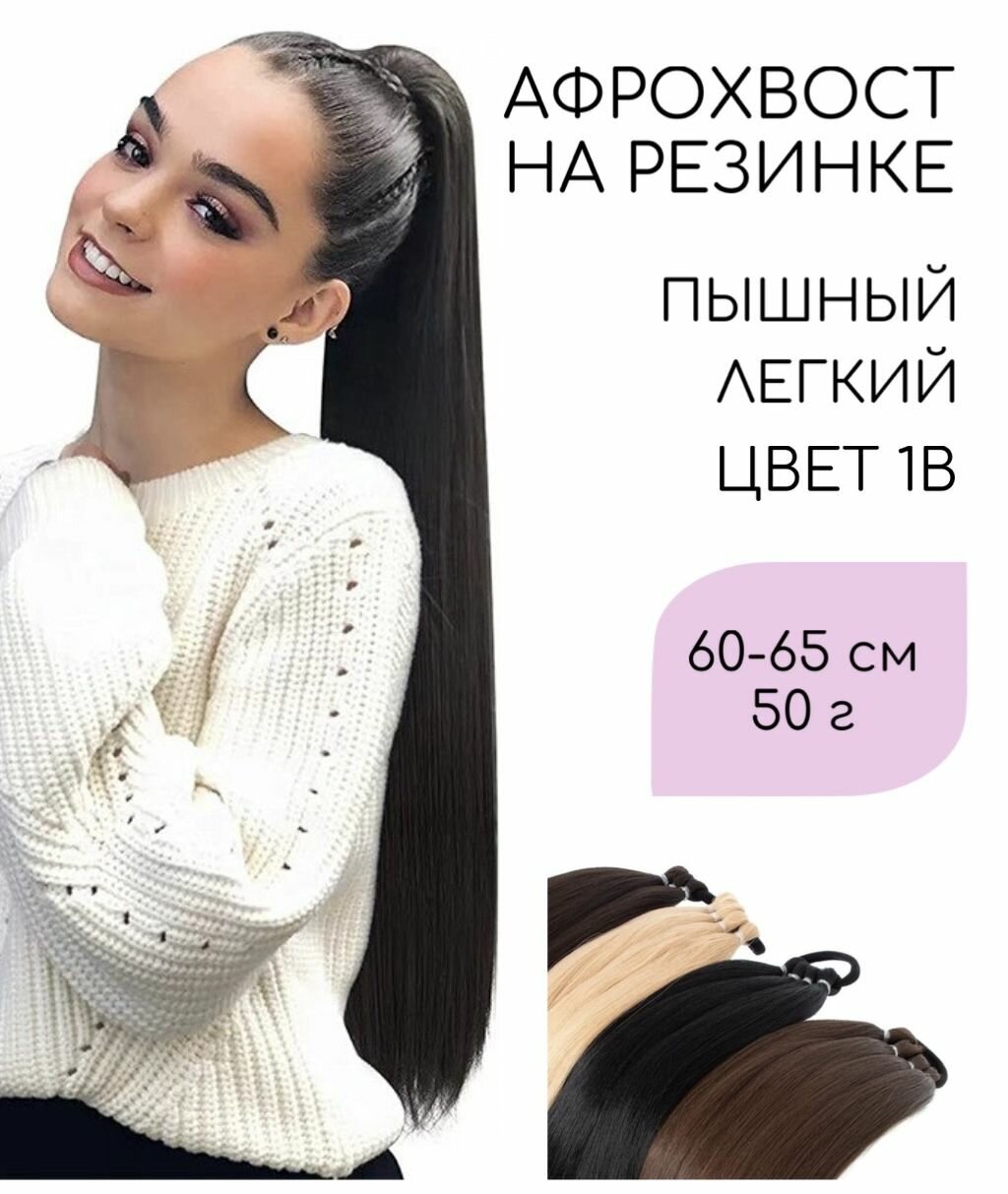 Отзывы на Хвост на резинке накладной длинный шиньон, коса из искусственных волос гофре, афрохвост из канекалона 65 см 50 г