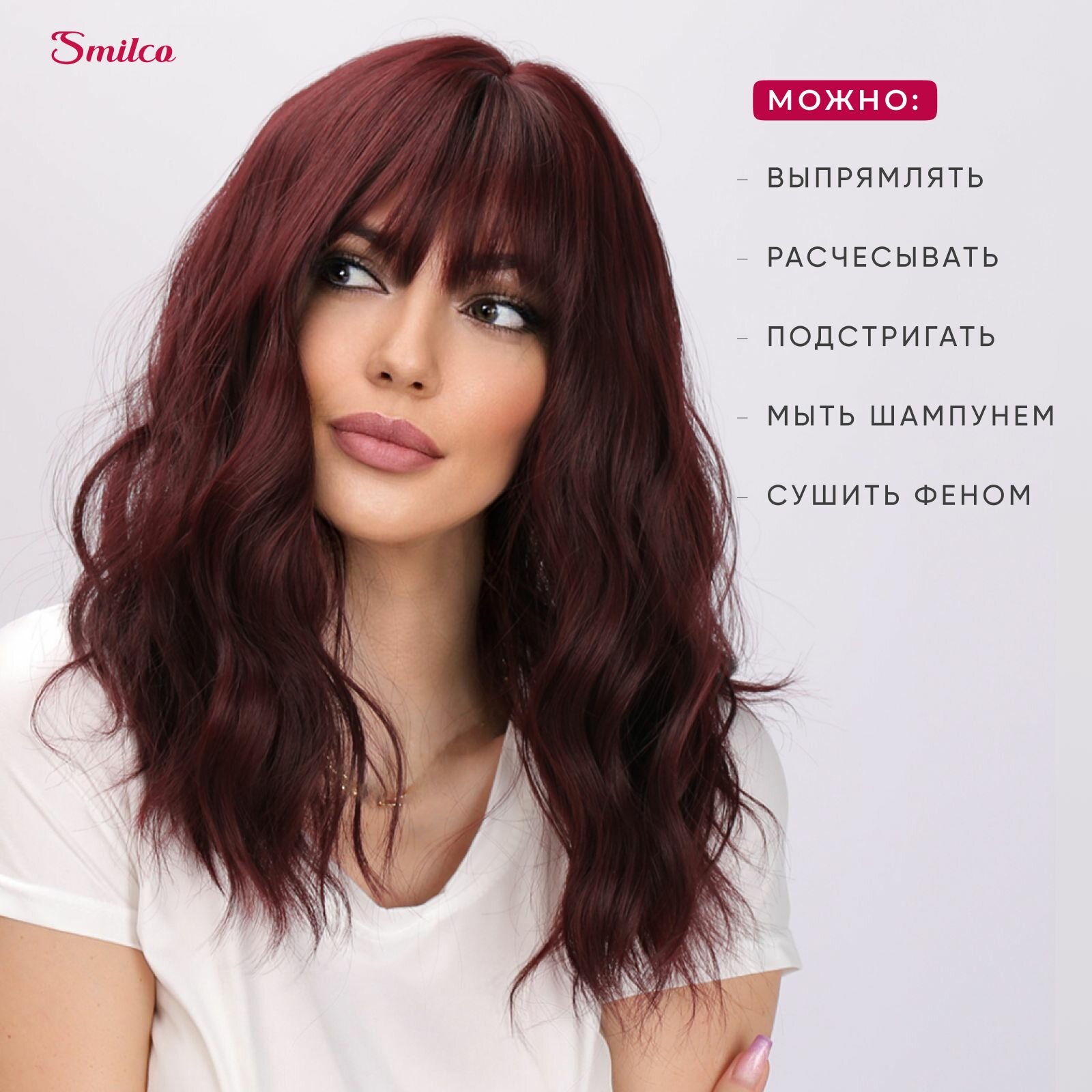 10 цен на Парик Smilco средней длины с челкой красный каштан