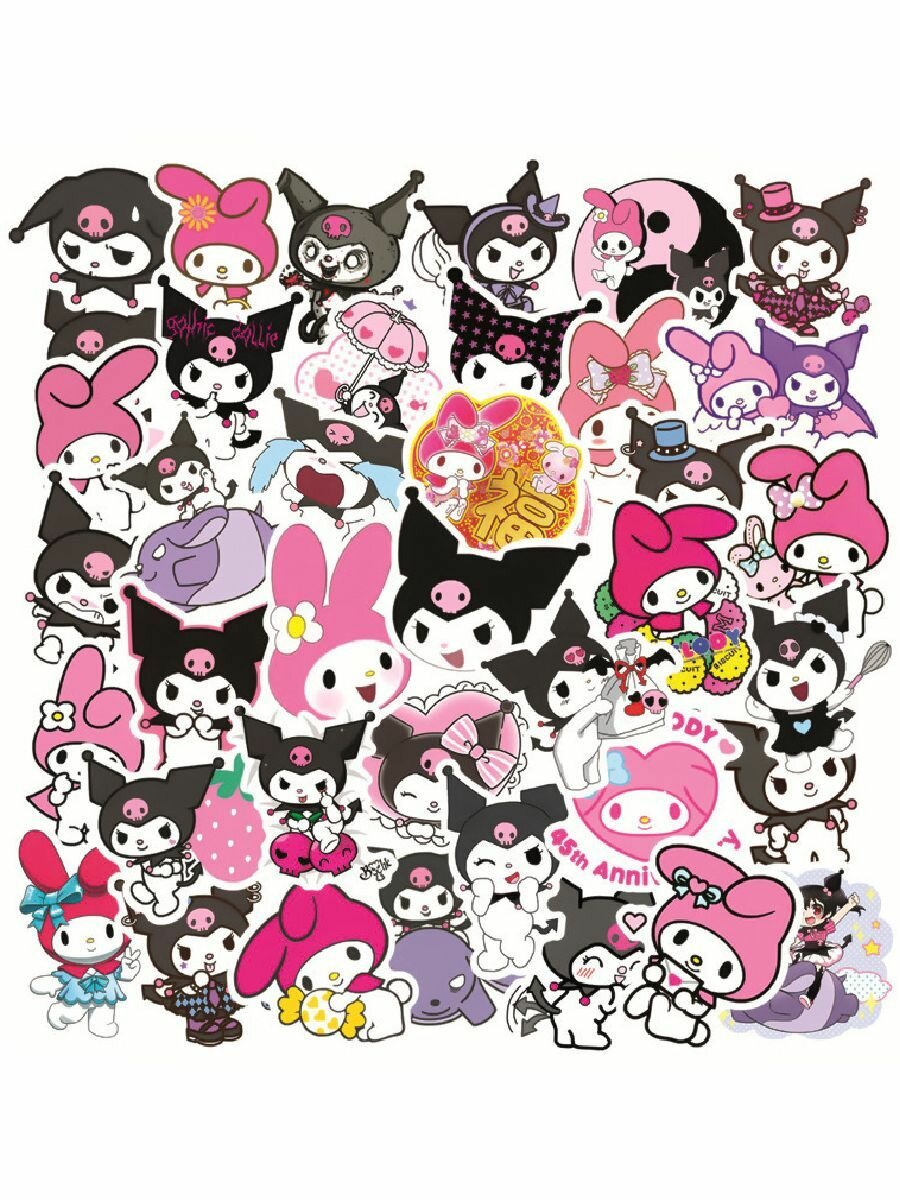 10 цен на Стикеры "Куроми и Мелоди" 50 штук виниловые, глянцевые. Наклейки самоклеящиеся аниме.