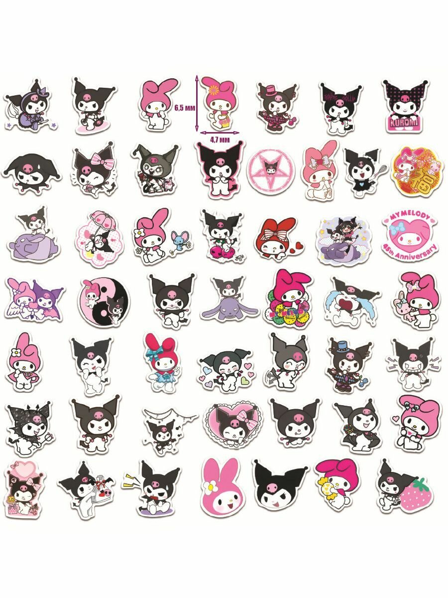 Стикеры "Куроми и Мелоди" 50 штук виниловые, глянцевые. Наклейки самоклеящиеся аниме. информация: