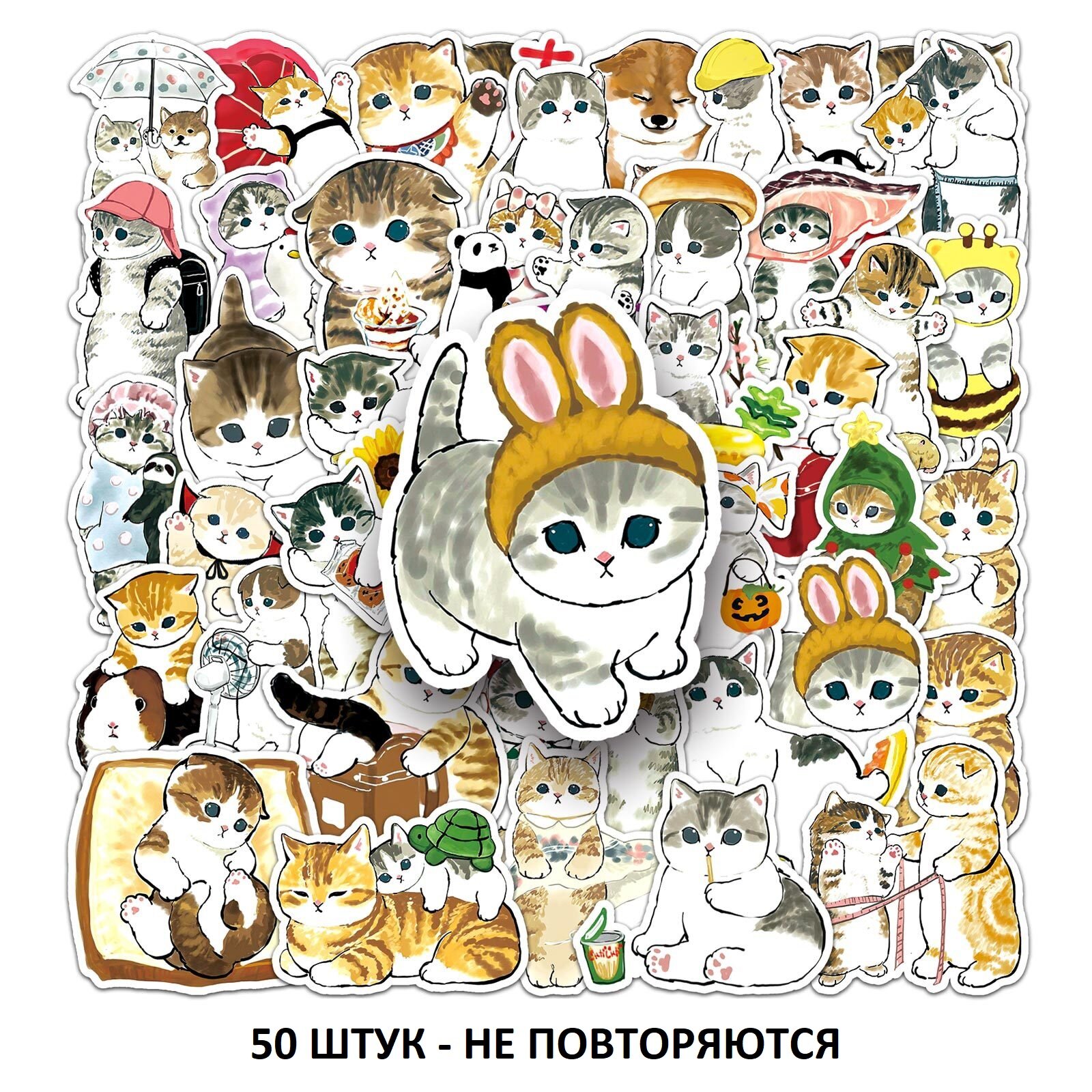 Наклейки котики набор, стикеры на телефон 75шт