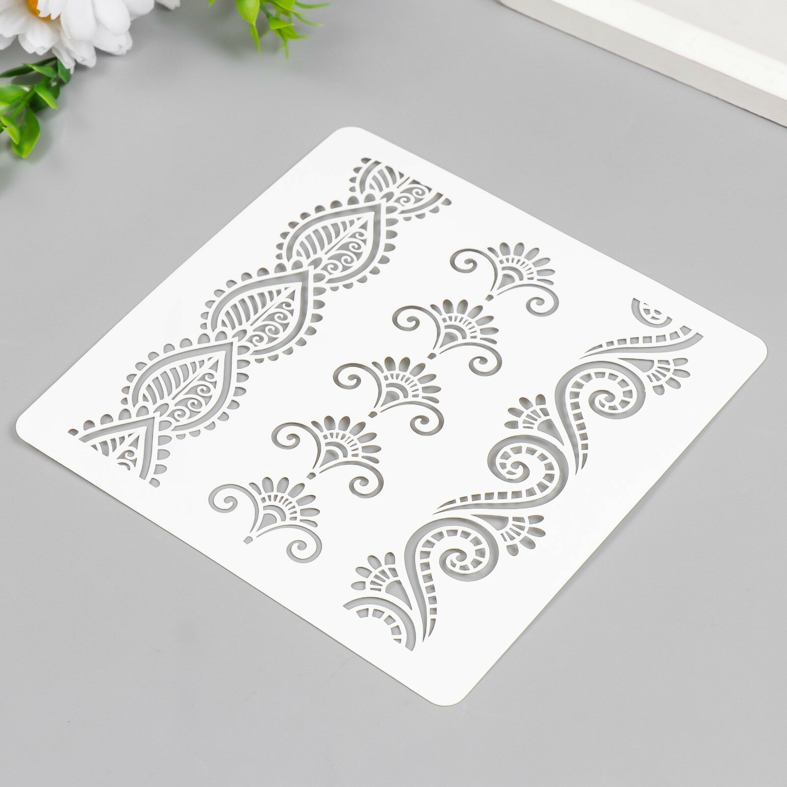 10 цен на Трафарет пластиковый "Мехенди узоры" 15х15 см