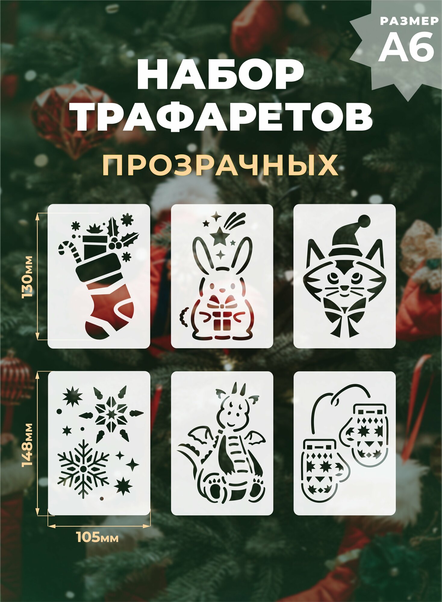 10 цен на Набор детских прозрачных трафаретов А6 10,5х14,8см "Новый год и Рождество"