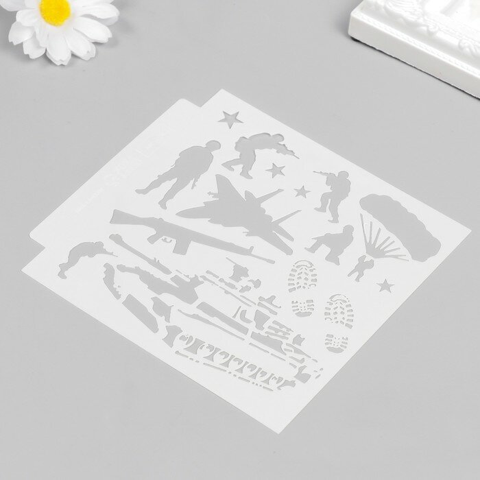 10 цен на Трафарет пластик "Защитники" 13х13 см(3 шт.)