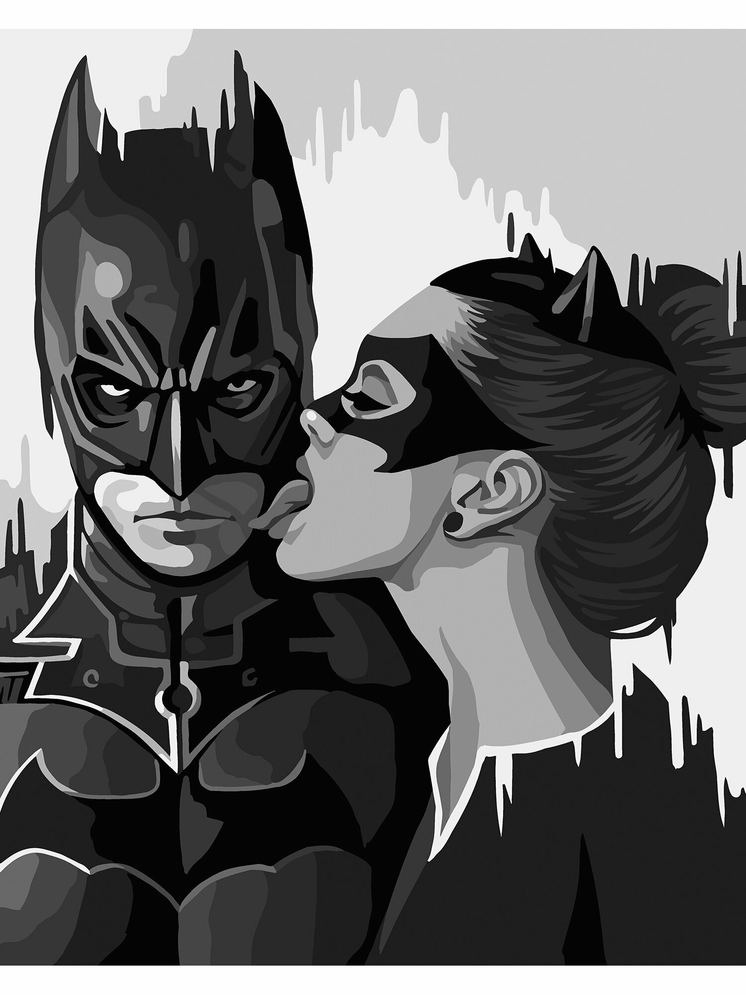 Отзывы на Картина по номерам на холсте 40х50 см "Бэтмен и Женщина-кошка". Холст на подрамнике