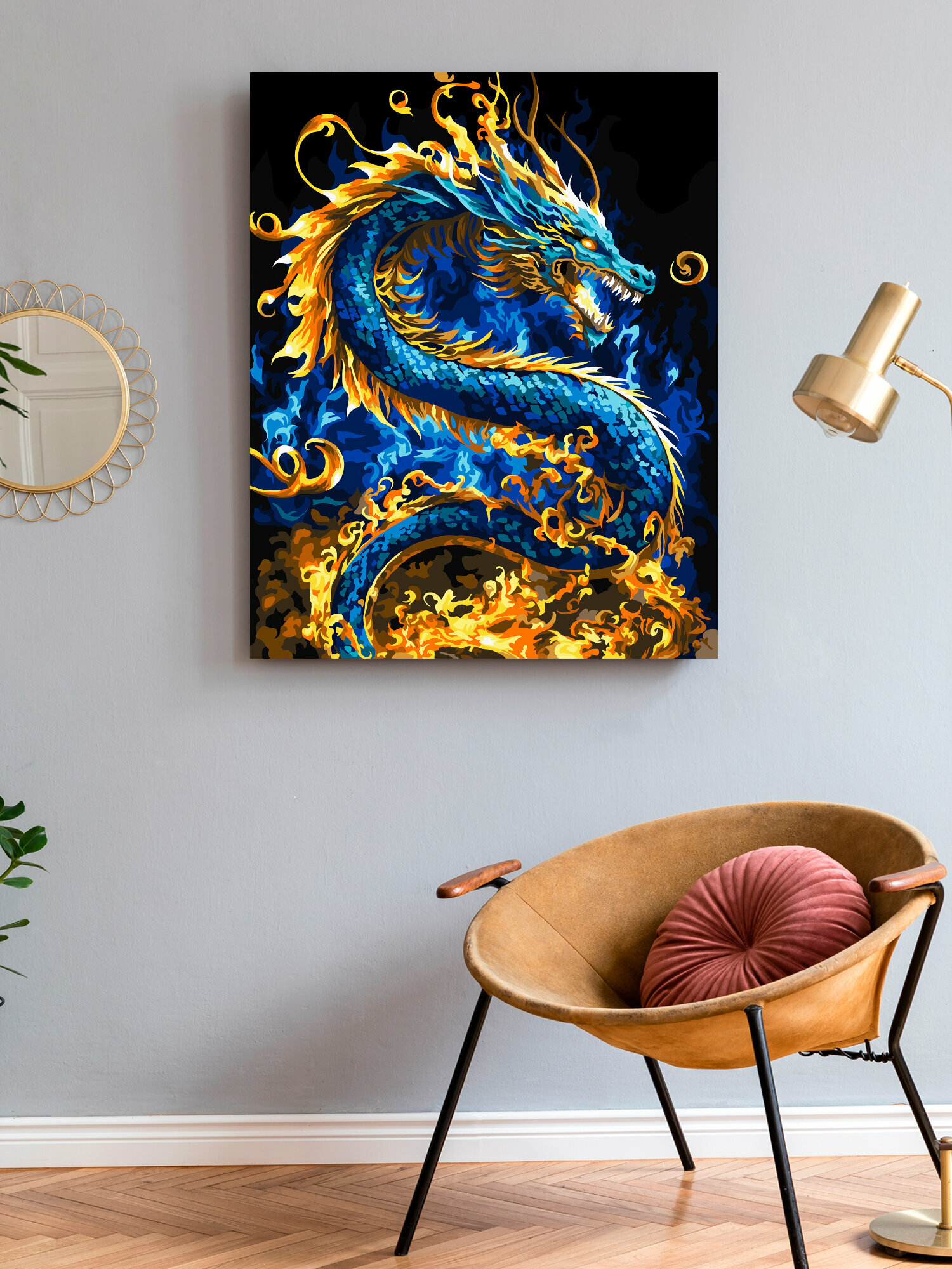 10 цен на Картина по номерам на холсте 40х50 см "Дракон в огне" деревянный подрамник 40х50 см