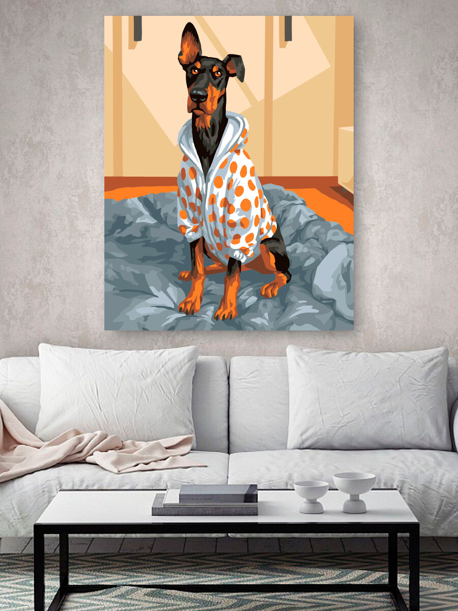 Картина по номерам на холсте 40х50 см на деревянном подрамнике "Доберман в пижаме" информация: