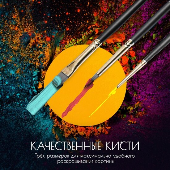 | Особенности | кисти в комплекте / краски в комплекте / с кристаллами / с поталью / черный холст |