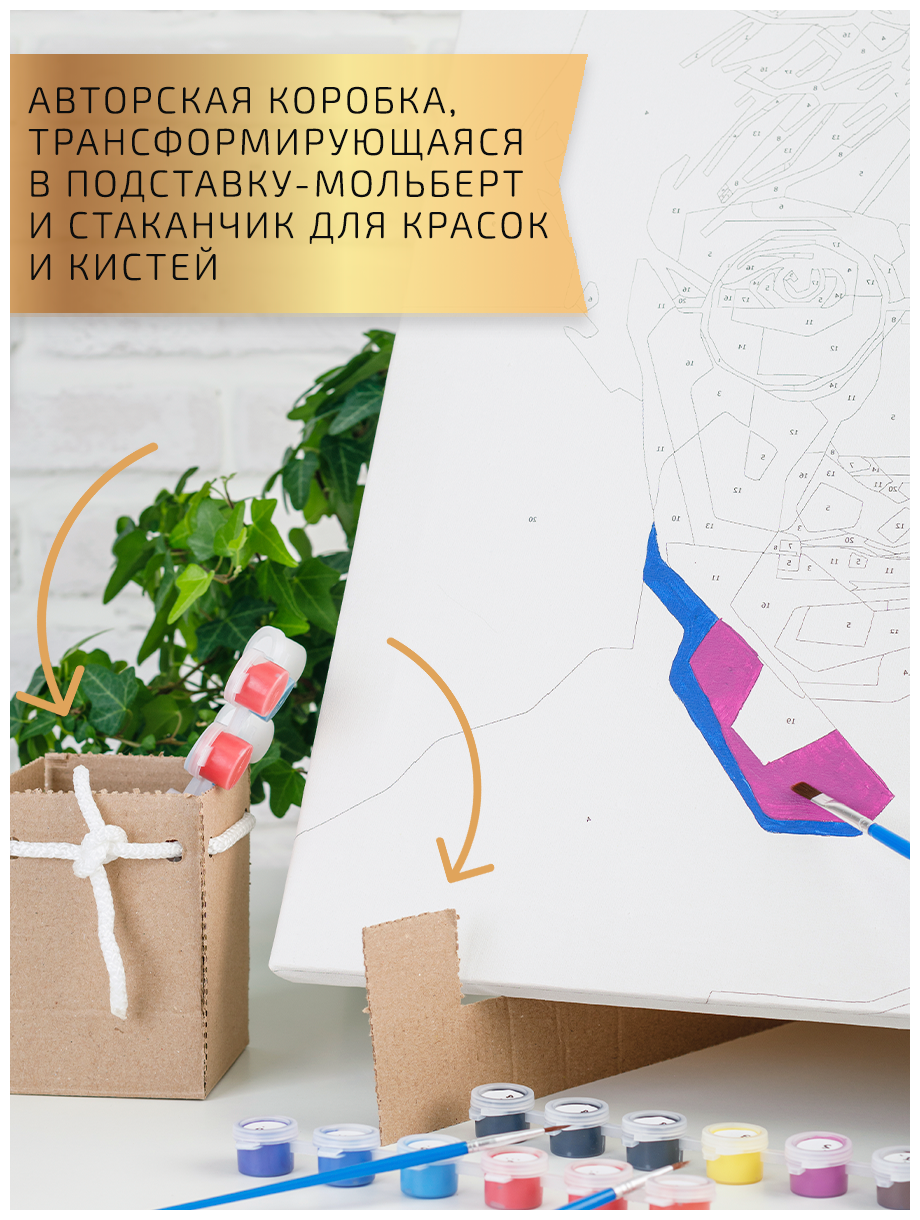 | Комплектация | -Холст на подрамнике -набор акриловых красок -3 кисти разного размера -настенное крепление -салфетки -подробная инструкция -схема картины в электронном виде по QR-коду -авторская коробка (подставка-мольберт и стаканчик) |