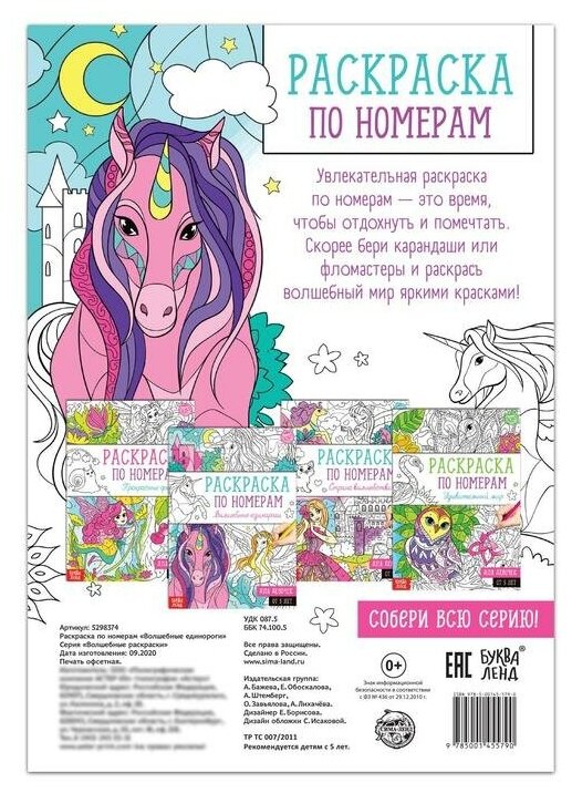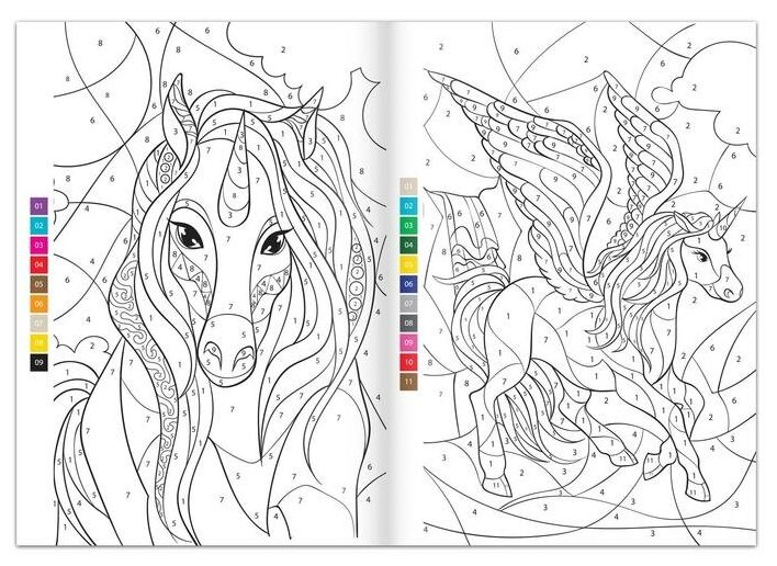 Раскраска по номерам "Волшебные единороги", 16 стр., формат А4 информация: