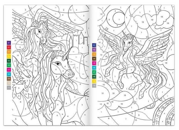 10 цен на Раскраска по номерам "Волшебные единороги", 16 стр., формат А4
