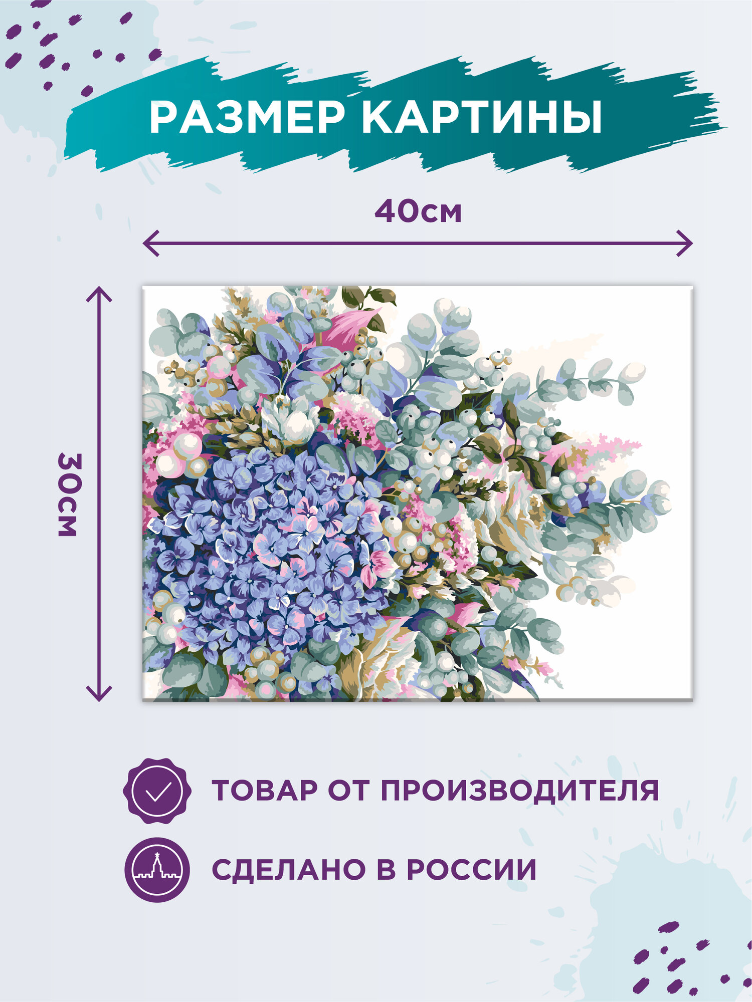Картина по номерам с холстом на подрамнике "фрея" 40 x 30 см "Акварельный букет с гортензией" PNB/PM-074 информация: