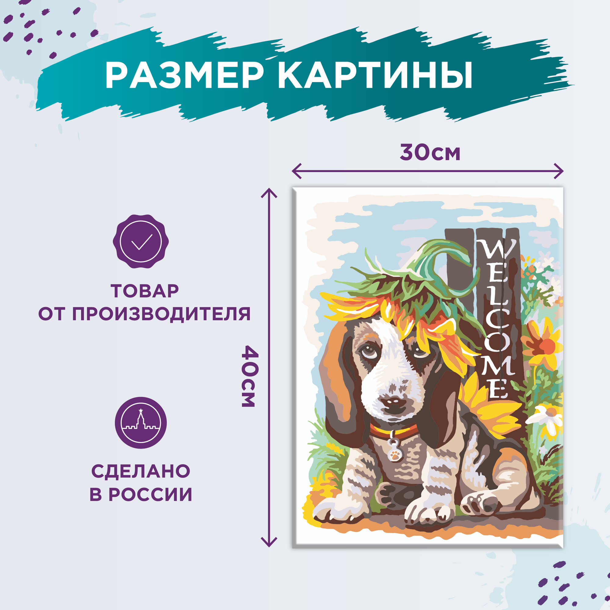 Картина по номерам Щенок в подсолнухе, 30x40 см. Фрея информация:
