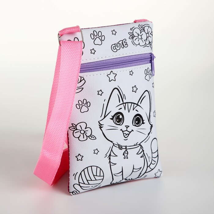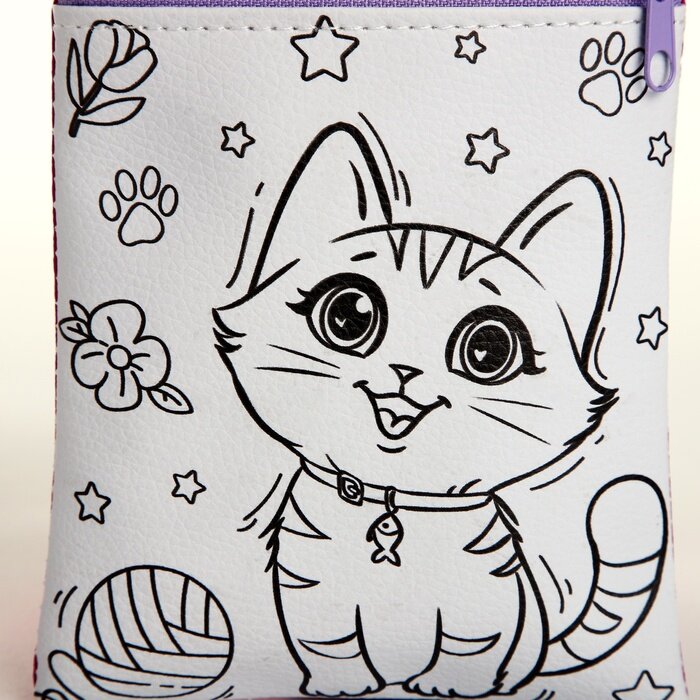 Сумка детская для девочки под раскраски "Котик с клубком" 16х11см информация: