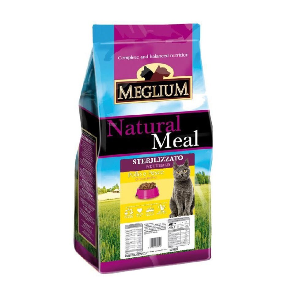 Корм Meglium Natural Meal Sterilizzato Chicken & Fish для стерилизованных кошек, с курицей и рыбой, 3 кг