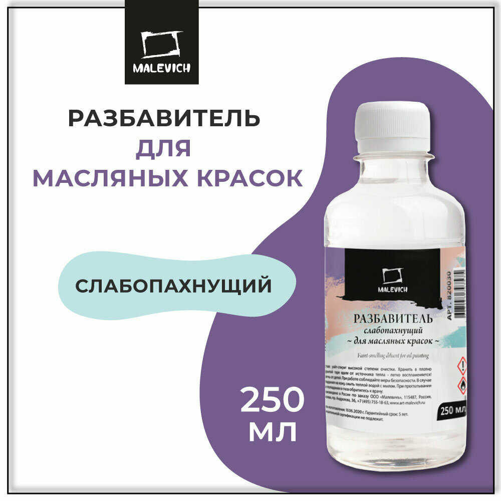 Разбавитель без запаха Малевичъ для масляных красок, 250 мл информация: