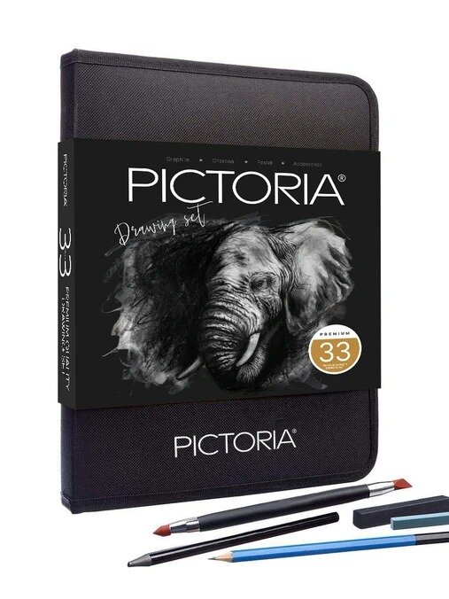 | Комплектация | 12 шт. Графитовых карандашей с разной твердостью от 5H (твердый) до 8B (мягкий) 3 шт. Угольных карандаша разной твердости (твердый, средний, мягкий) 3 шт. Угольных стержня разной твердости (твердый, средний, мягкий) 3 шт. Графитовых стержня разной твердости (твердый, средний, мягкий) 3 шт. Бумажных карандаша для растушевки малого и среднего размера 1 шт. Двойная металлическая точилка для карандашей 1 шт. Пластиковая точилка для карандашей 1 шт. Бескорпусный графитовый карандаш 6В 1 шт. Нож художника 1 шт.Удлинитель для карандашей 1 шт. Ластик 1 шт. Ластик художника - "клячка" 1 шт. Блок наждачной бумаги 1 шт. Скетчбук |