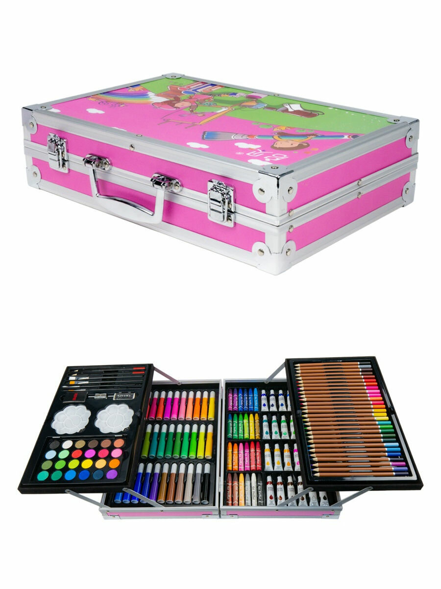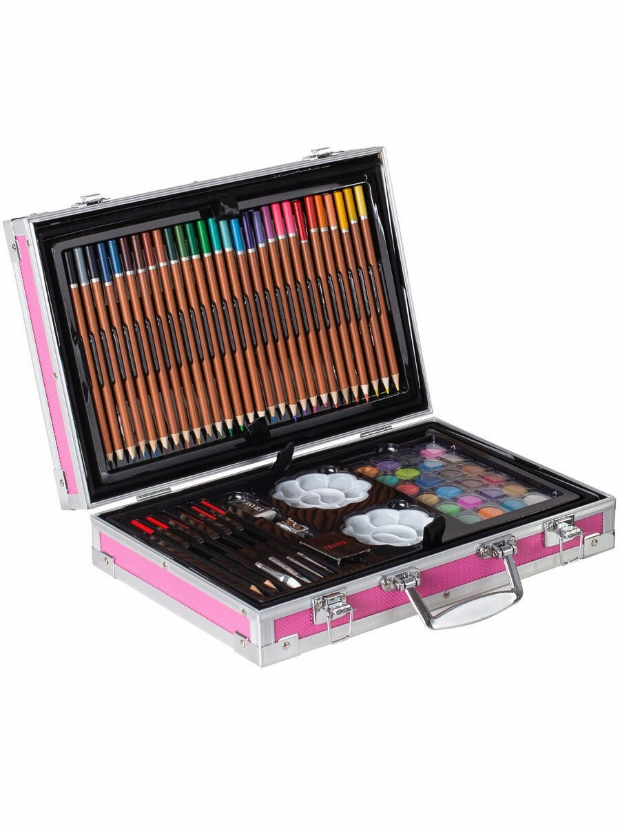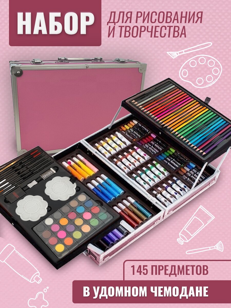 10 цен на Набор для рисования "Чемодан творчества" с красками, в алюминиевом чемоданчике, 145 предметов, розовый