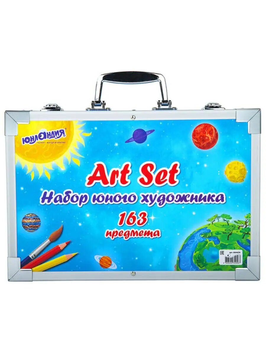 Подарочный набор юного художника для рисования, детского творчества в школу, краски, кисти, карандаши, 165 предметов в кейсе, Юнландия Космос, 665671 2 025 ₽