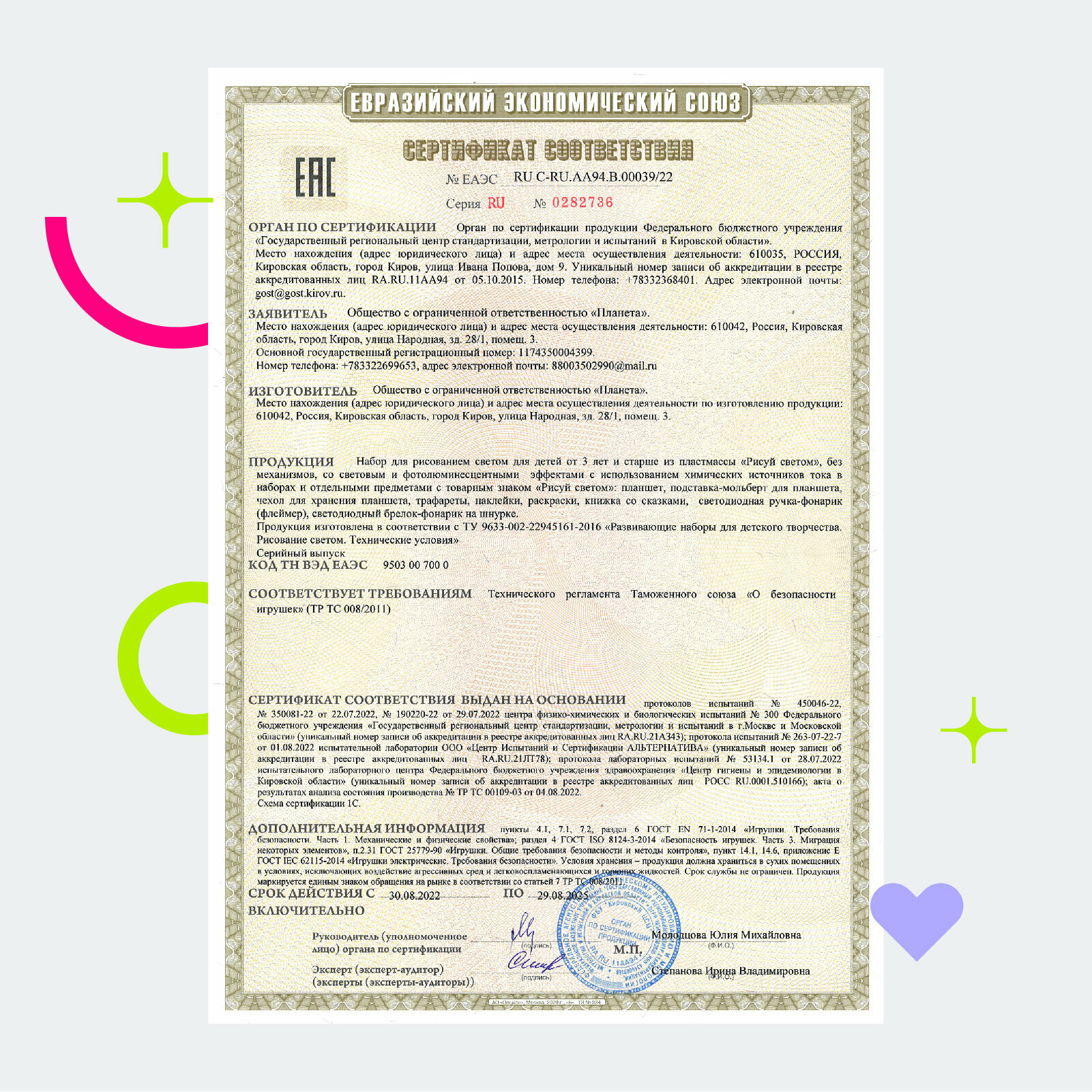 | Состав набора | маркер / планшет / трафареты |