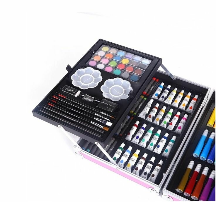 Набор для рисования, набор юного художника в чемоданчике с масляными красками 145 предметов для девочек
