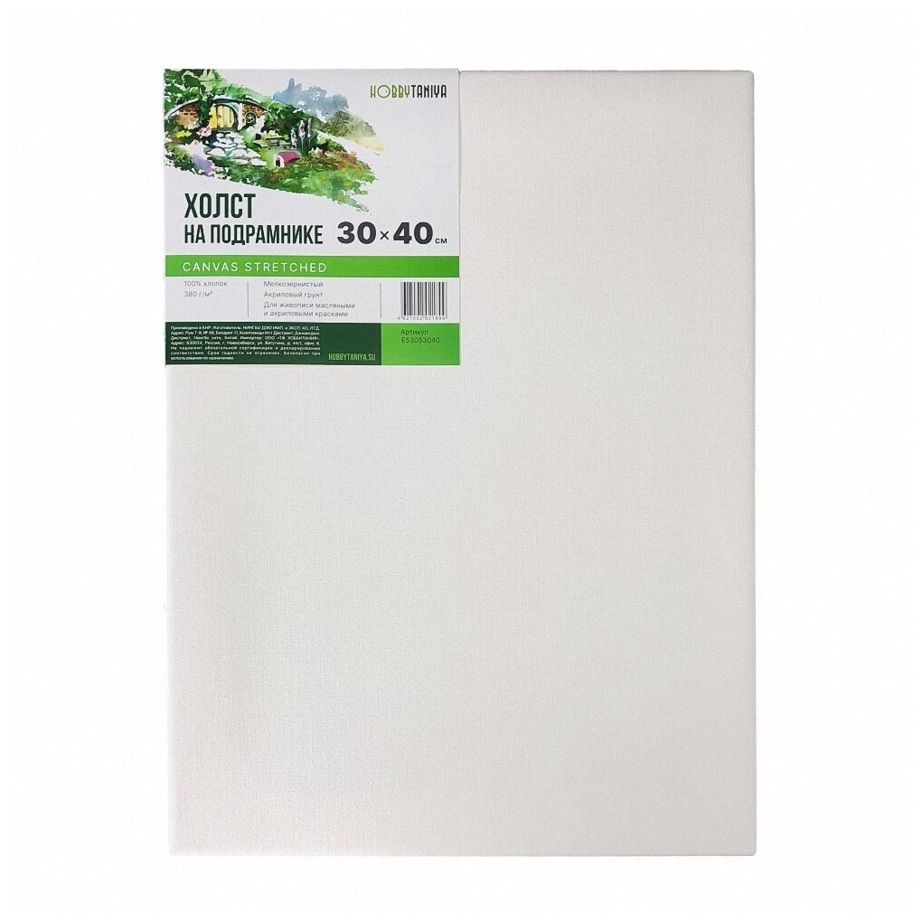 Холст на подрамнике 40х50 см, Хоббитания, хлопок 380 гр/м2, холст для рисования акриловыми и масляными красками, модульный подрамник, грунт акриловый
