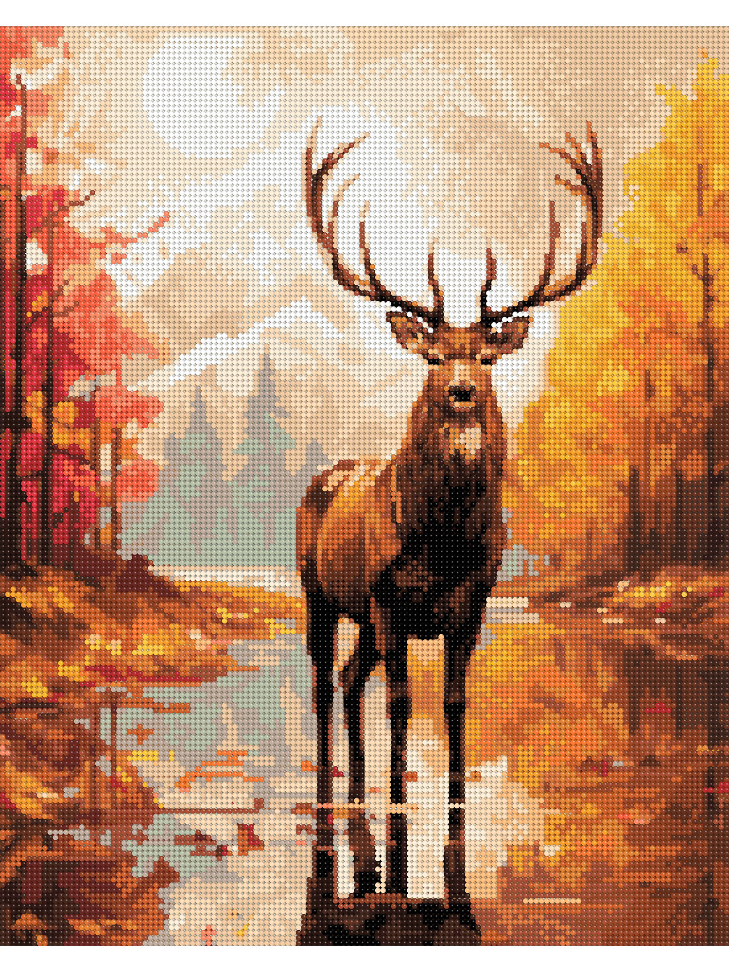 Алмазная мозаика на деревянном подрамнике 40х50 см. "Олень в осеннем лесу" Алмазная вышивка. Картина стразами информация: