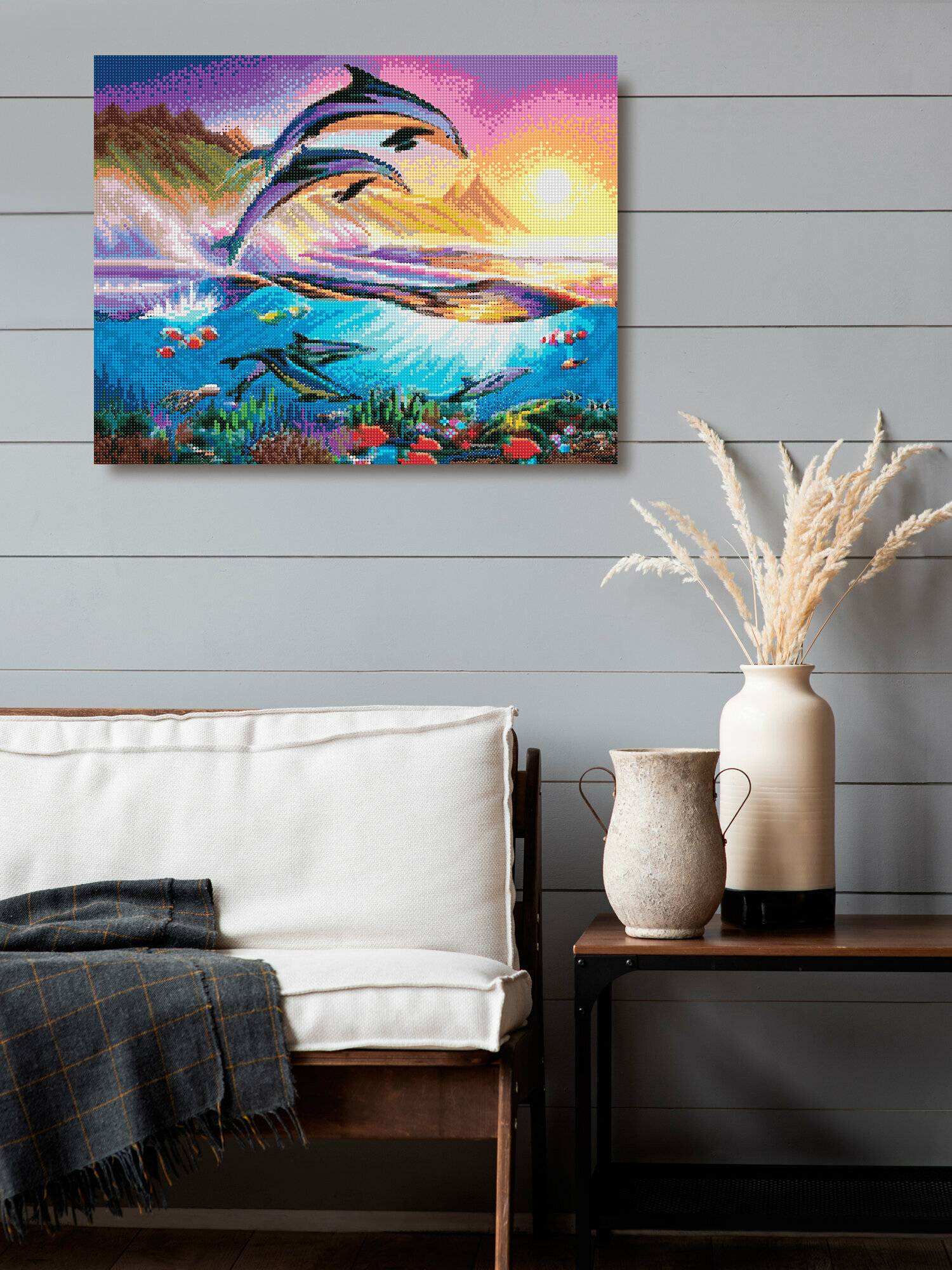 10 цен на Алмазная мозаика. Холст на подрамнике 40х50 см "Сказочные дельфины". Алмазная вышивка. Картина стразами