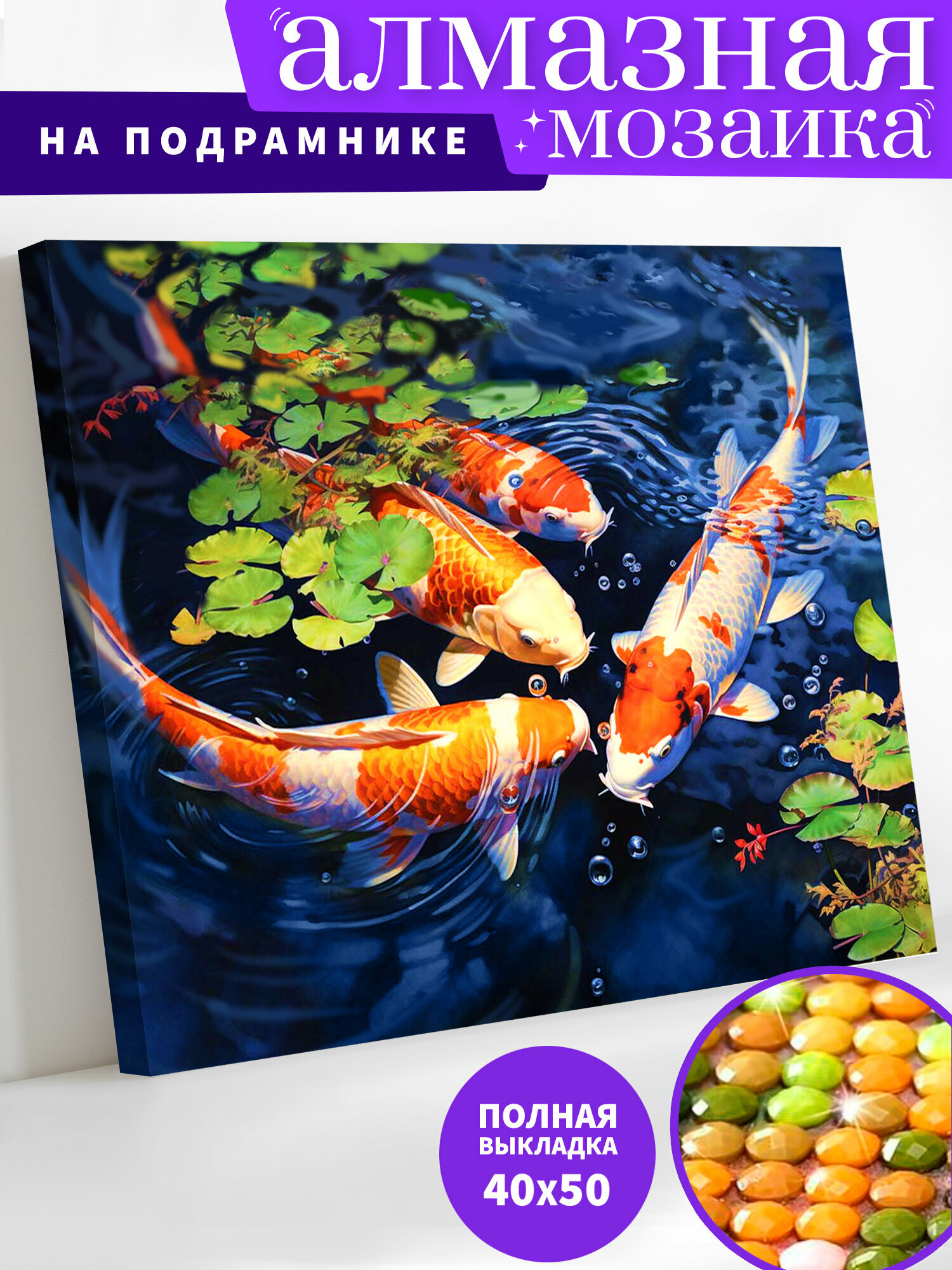 10 цен на Алмазная мозаика на подрамнике 40х50 см "Карпы". Алмазная вышивка. Картина стразами