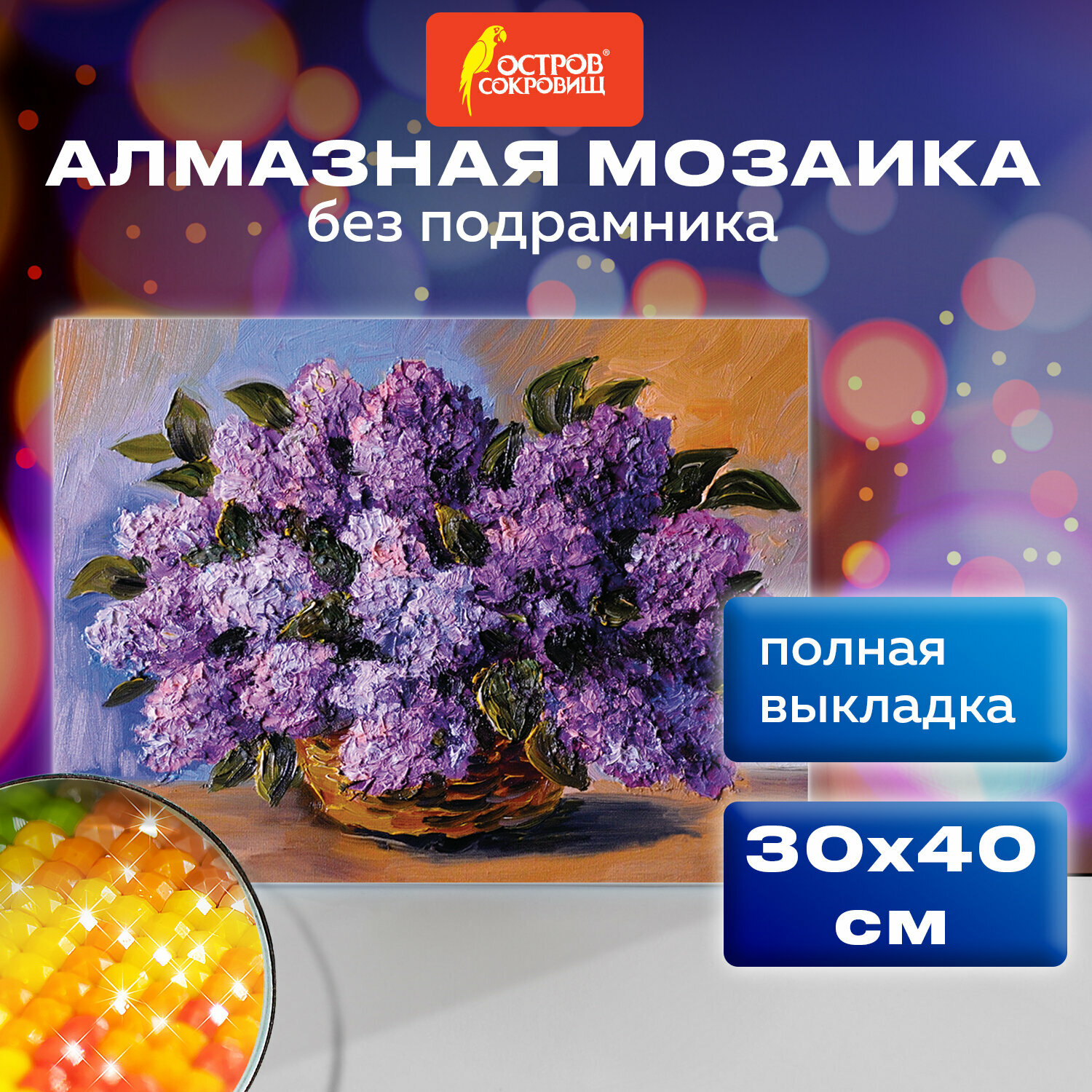 Картина стразами (алмазная мозаика) 30*40 см, остров сокровищ "Пушистая сирень", без подрам., 662402 информация: