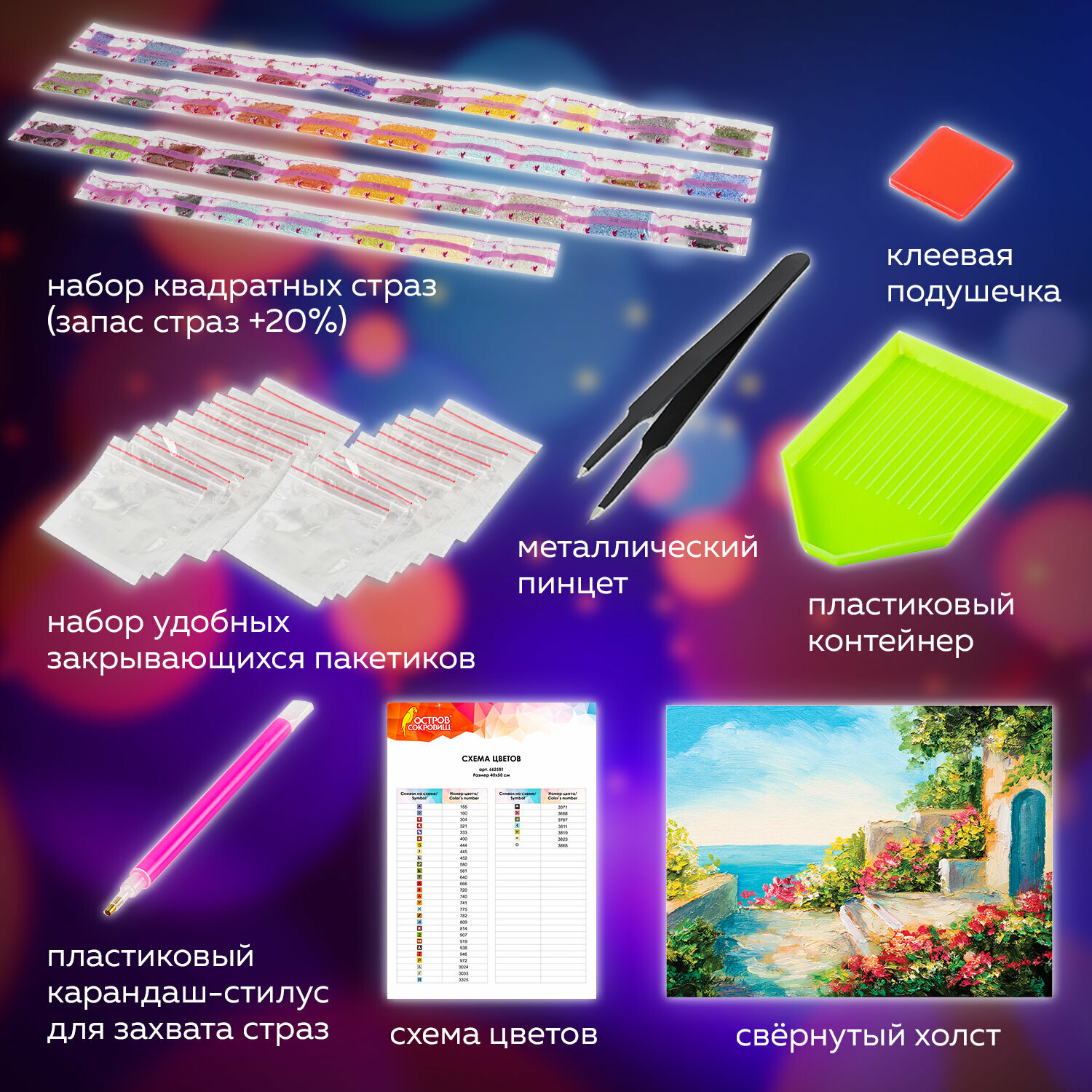 | Комплектация | холст, стразы, контейнер, стилус, клеевой квадрат, пинцет, схема |