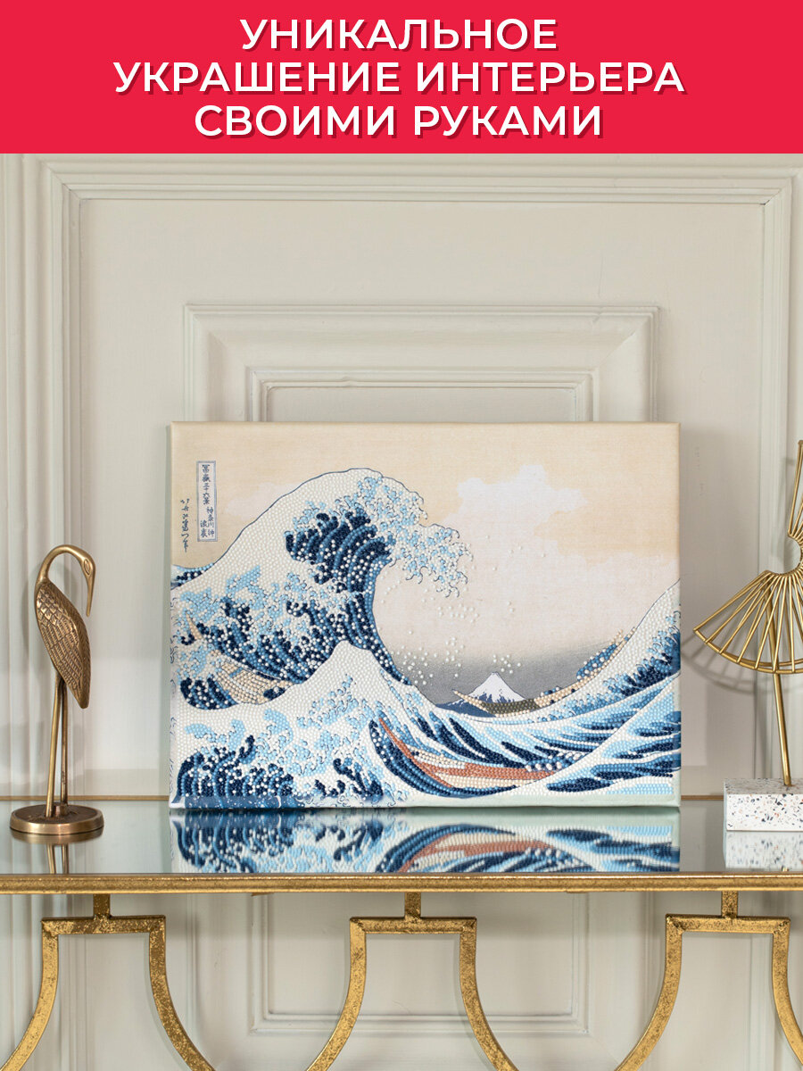 10 цен на Кристальная (алмазная) мозаика фрея MET-ALPD-024 на подрамнике Большая волна в Канагаве, Кацусика Хокусай 40 х 30 см