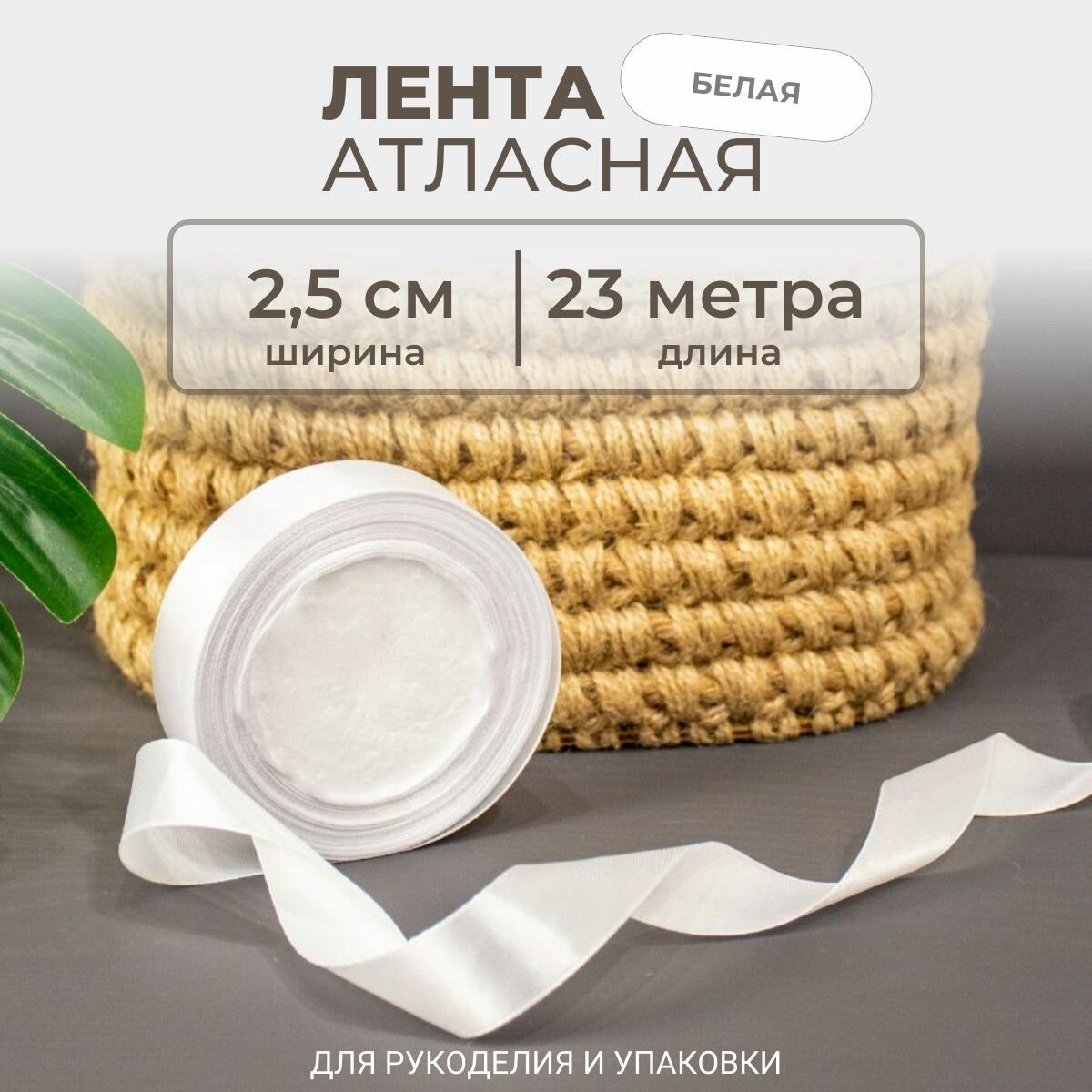 10 цен на Атласная лента - белая. Ширина 2.5см, длина 22,86 метра
