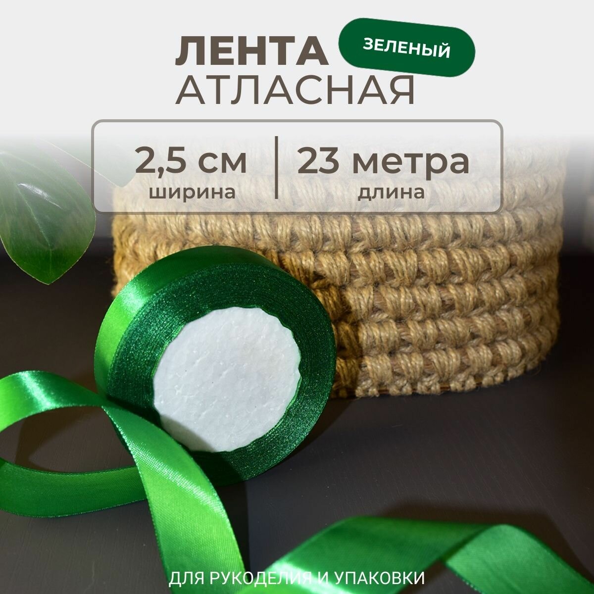 10 цен на Атласная лента - зеленая. Ширина 2.5см, длина 23 метра