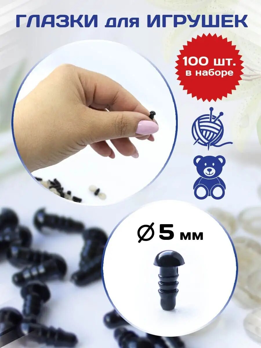10 цен на Пластиковые черные глазки с фиксатором 5мм, 100 шт
