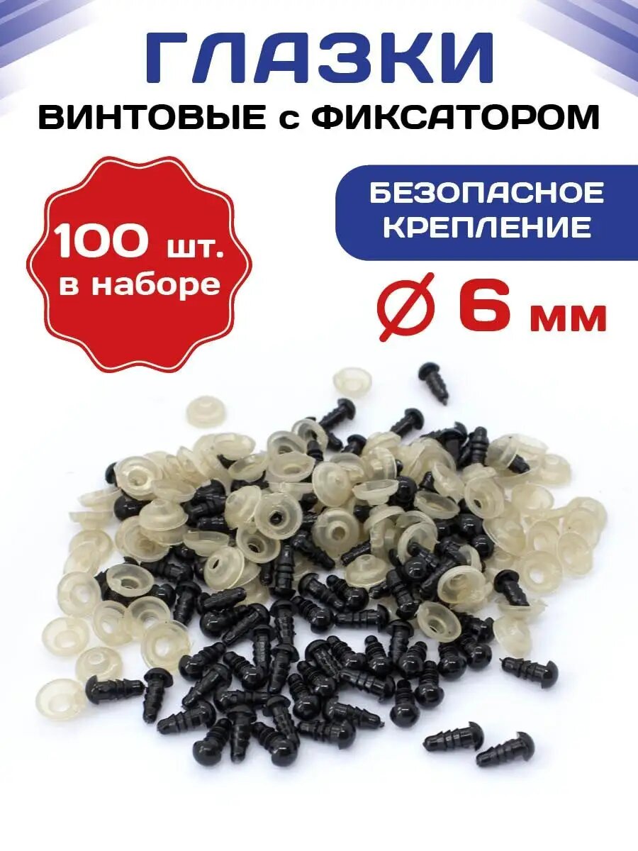 10 цен на Пластиковые черные глазки с фиксатором 6 мм, 100 шт
