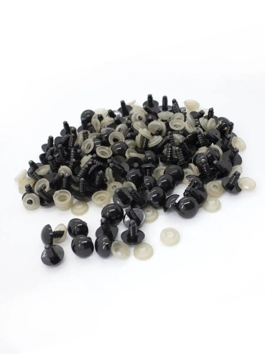 Пластиковые черные глазки с фиксатором 12 мм, 100 шт 288 ₽