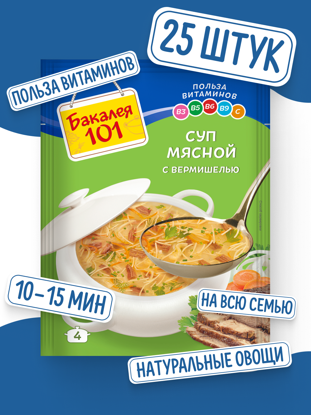 Суп Мясной с вермишелью Бакалея 101 60 гр / 25 упаковок информация: