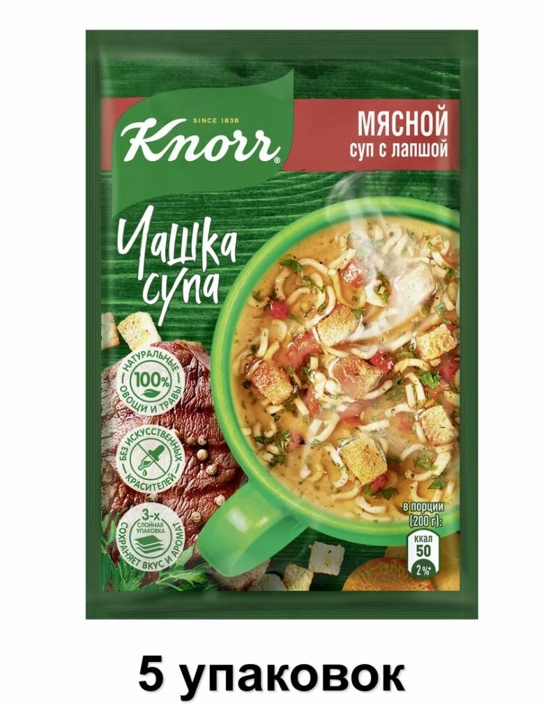 Knorr Суп быстрого приготовления "Чашка супа" Мясной суп с лапшой, 14 г, 5 уп информация: