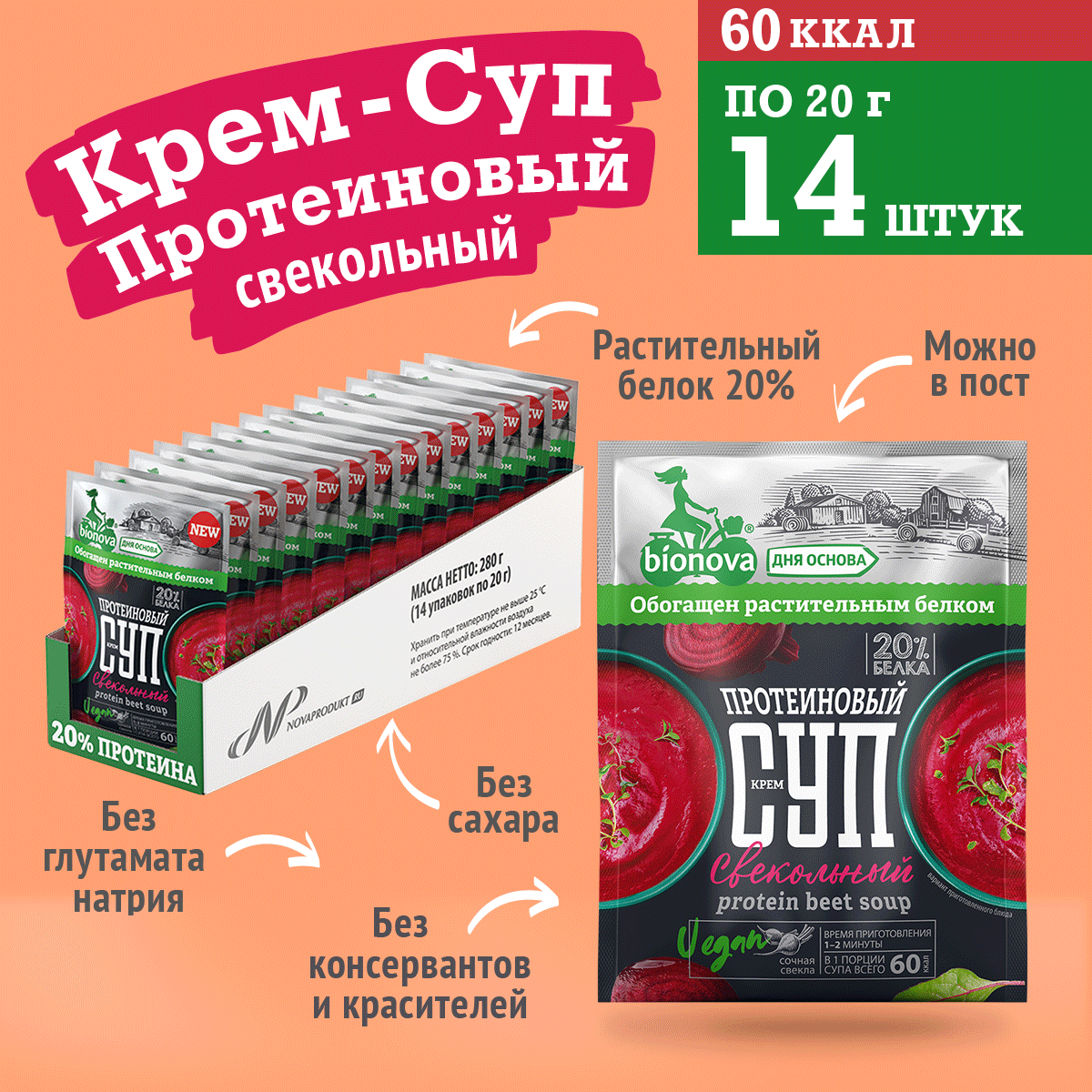 Супы Bionova Свекольный крем-суп Bionova® (vegan protein) - 14 шт. информация: