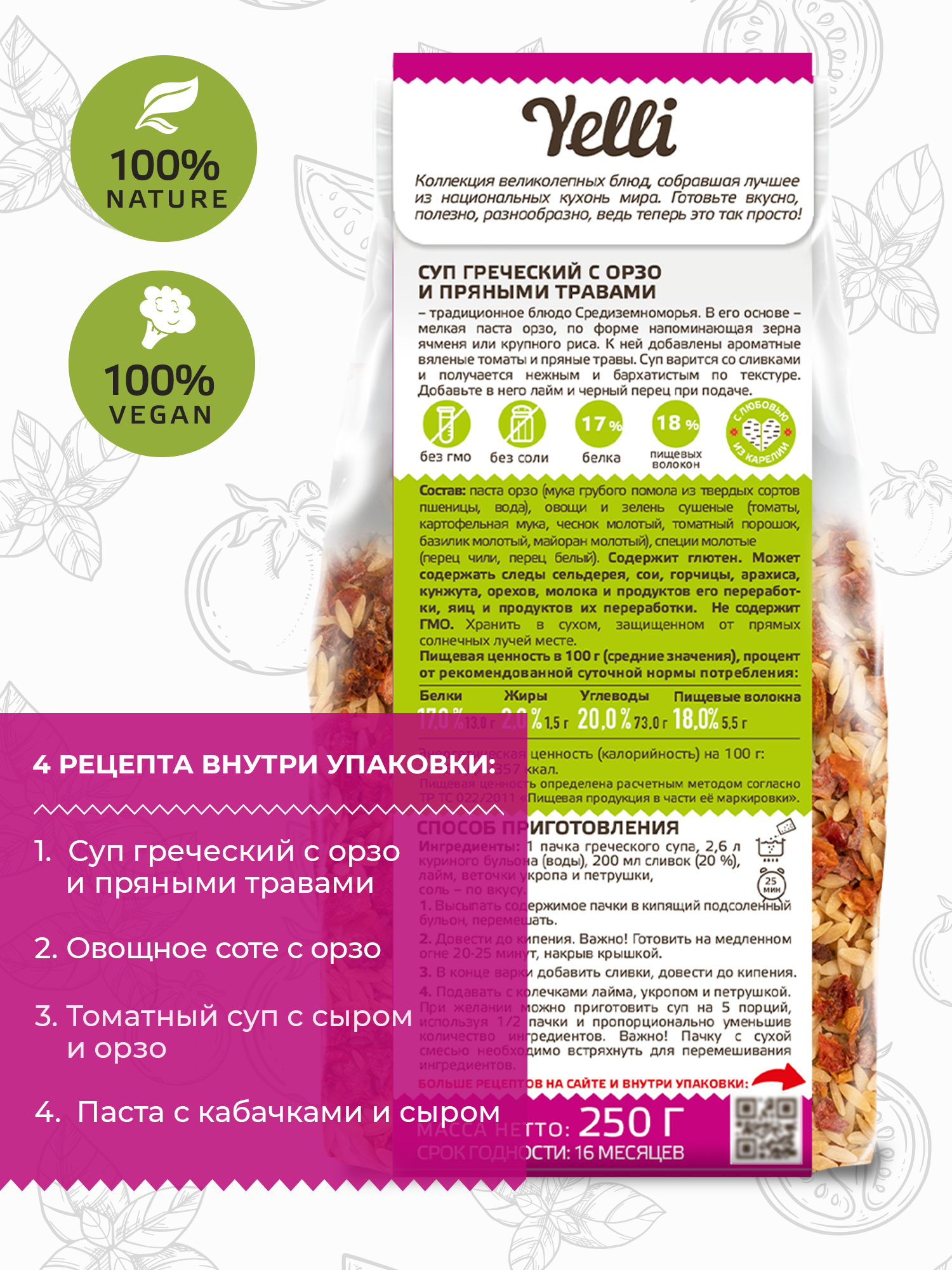 Суп Греческий с Орзо и Пряными травами Yelli 250г информация: