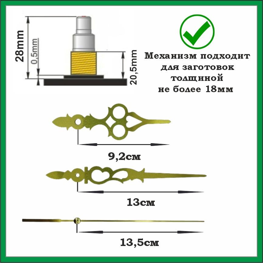 Отзывы на Часовой механизм для настенных часов бесшумный кварцевый со стрелками 13/9 см золотистого цвета