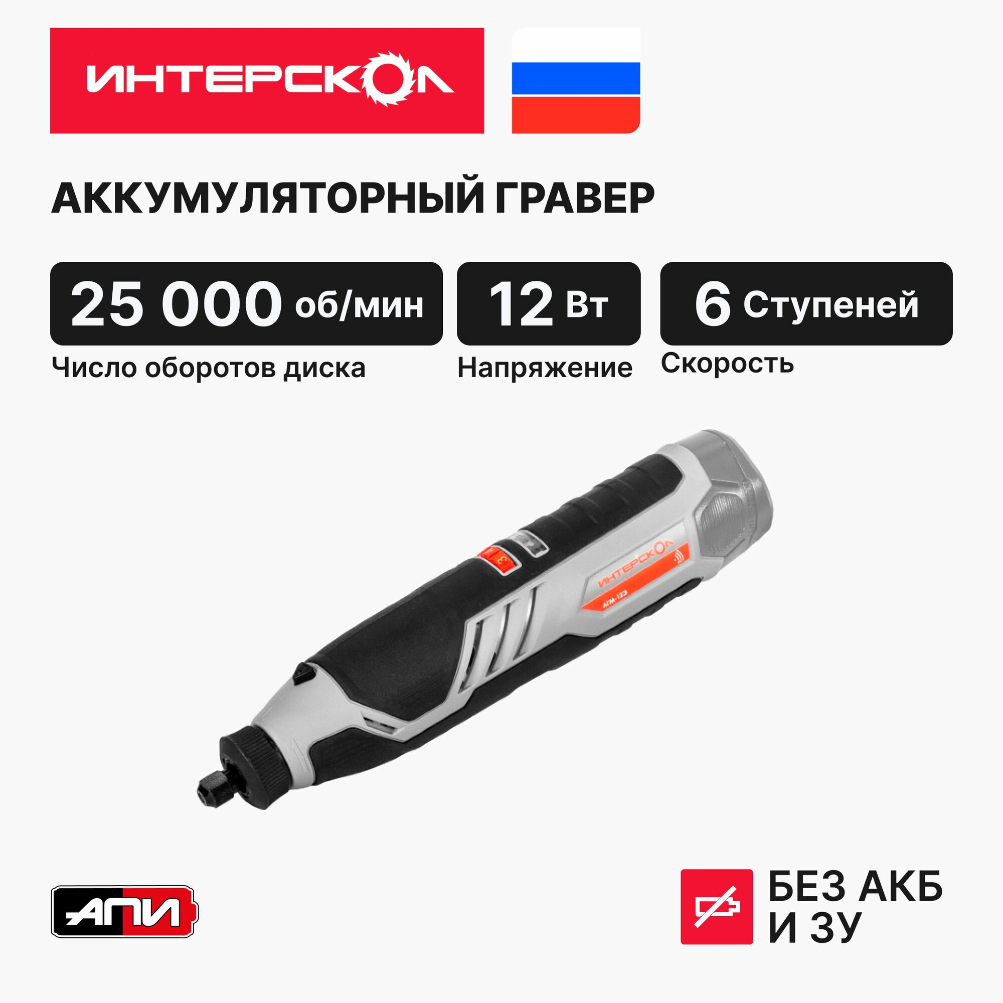 Отзывы на Аккумуляторный гравер ИНТЕРСКОЛ АГМ-12Э, 12 В, 25000 об/мин, без АКБ и ЗУ, 809.0.0.70